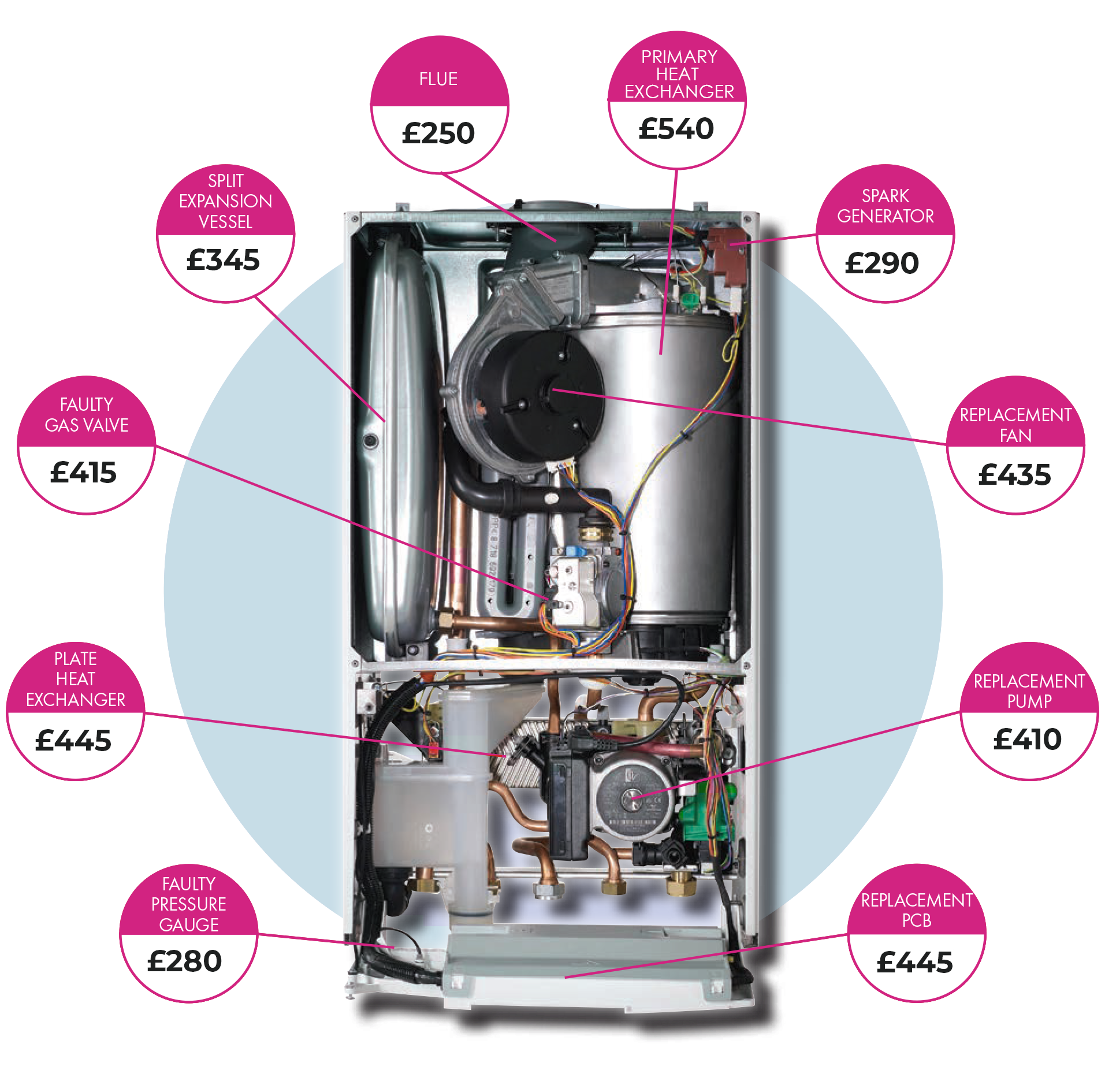 Boiler repair: £150–£300 | Major breakdown: £500+